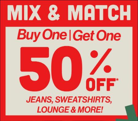 Mix & Match Buy One, Get One 50% Off Jeans, Sweatshirts, Lounge & More